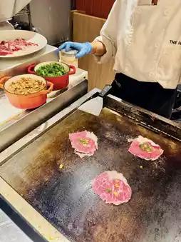 The freshly carved roast beef is tender and pink, even better with the gravy. The teppanyaki Saga Wagyu beef is tender with a fragrant fat aroma, enhanced by garlic slices and scallions for extra flavor. A must-try is the teppanyaki cheese hamburger steak—the cheese melts perfectly with the aroma of onions, the hamburger patty is very flavorful and juicy, highly recommended! There’s also foie gras toast, rich and oily, you have to have at least one piece~