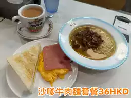 Yung's Tangerine Peel Roasted Goose with Rice: The roasted goose🍗 has crispy, juicy skin and tender meat that’s not dry. Dip it in the tangerine peel sauce to cut the grease and refresh your palate. The white rice is made from fragrant rice🍚, naturally aromatic, and the portion is very generous—enough to satisfy even men. Comes with a hot drink choice of coffee or tea, with an option to upgrade to iced drinks or others. I chose the classic Hong Kong-style milk tea☕, rich in tea aroma and creamy milk flavor, delicious even without sugar. 60 HKD.