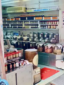 A historic shop in Central, Hong Kong Island, making soy sauce since 1917 using traditional sun-drying and fermentation methods.