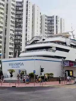 A cruise ship-themed mall in Hung Hom, Kowloon, built on the site of former Whampoa Dockyards, houses over 300 shops and a harborfront promenade.
