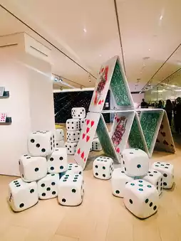 The exhibition features six major photo spots, from a colorful paper room to a giant playing card array, and an astonishing floral wall. Each interactive element allows visitors to experience Loewe's unique design aesthetics. These installations not only display 19 classic handbag re-editions and new designs but also let visitors deeply explore the history and evolution of the Puzzle handbag.