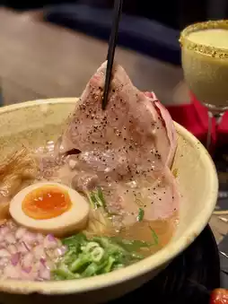This Japanese restaurant located in Central is a sub-brand of "Tsukada Nojo" from Miyazaki Prefecture, Kyushu, specializing in ramen x izakaya with a unique character. The restaurant features a semi-open izakaya design, offering a comfortable environment with both indoor and outdoor seating options. The outdoor seats have a chill vibe, perfect for drinking and chatting with friends.