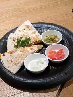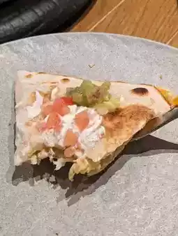 Shredded chicken Mexican pie $128, unexpectedly delicious. The outer layer of the pie is slightly burnt, but still has a chewy texture. It is filled with shredded chicken and melted cheese, and the taste is unexpectedly like tuna sauce, which is very fragrant and a little moist. Paired with Mexican seasonings, there are cheese sauce, tomato cubes, and onion sauce. It tastes fresh and tastes good, and it is recommended to try.