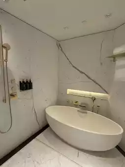 Got unexpectedly lucky with an upgrade to the N2 room at Nihil Gromeli Hotel~ Opening the window reveals a view of the church spire and city skyline. During the day, sunlight pours through the floor-to-ceiling windows, filling the room, and at night, the lights sparkle like a movie scene! The room design is understated luxury, with a marble bathroom featuring a separate bathtub, and even the minibar setup is full of artistic flair✨