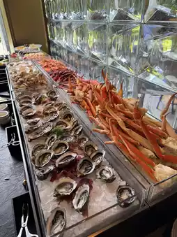 We upgraded to Prosecco to pair with the seafood. The seafood here includes crab legs, oysters, crayfish, scallops, and jade snails. Each is very fresh, especially the crab legs, which deserve praise for being large and meaty!
