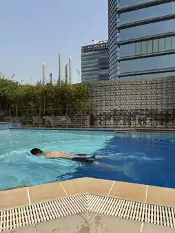 The pool area is old and small, but you can get fruit from the front desk to enjoy in this little sunbathing spot amidst the urban jungle.