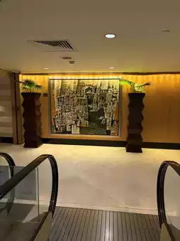 Located in the central district on the way to major shopping areas: K11 MUSEA, Victoria Harbour, and the Avenue of Stars. After climbing the stairs, you reach the first floor, and you need to take the escalator to the second floor to check in. The most eye-catching feature is the artwork by Ju Ming, which I last saw at my alma mater, Central University.