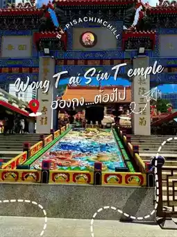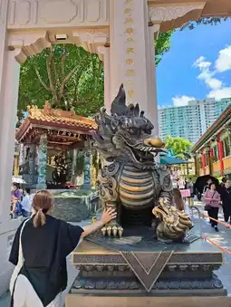 💓Wong Tai Sin Temple, also known as Wong Tai Sin Temple, is a beautiful temple popular in Hong Kong, attracting many tourists who come to pray for health, love, and fortune from the various deities' shrines. However, when we visited, the Elder Chan Ti Temple was closed for renovation. If you plan to go, check first if the repairs are finished✨ The atmosphere is peaceful, with beautiful Chinese architecture starting from the temple entrance. We were captivated by the stunning golden wall, very beautiful. A little tip before entering: don’t forget to rub the Qilin’s leg in front of the temple and the left knee of the statue.