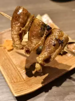 I ordered a draft beer 🍻, which paired perfectly with crispy chicken skin dumplings 🥟 skewers and savory mentaiko chicken wings!