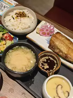 There are many dinner sets, most under $200 each. Sets include main dish, salad 🥗, miso soup, chawanmushi, and rice. Large portions, great value! The grilled dried fish is golden on the outside and the fish meat is not too dry.