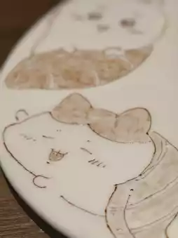 Plate art service is free with dessert order; if you want a specific design/content, WhatsApp 90868860 two days in advance to confirm and pay a $200 reservation deposit (daily quota applies, so booking is recommended). This time, celebrating a friend’s birthday, we had a popular Chiikawa design, which was beautifully done! The dessert was a popular pistachio-flavored Basque cheesecake. The cake has a savory pistachio flavor and is topped with crunchy pistachio bits, making the texture richer.