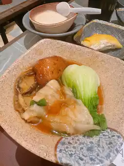 Special Dishes ๐ฅข The package includes ๐ฐ avocado sauce with snow crab meat ๐ฅ๐ฆ cheese flying fish roe tamagoyaki ๐ณ premium crab roe soup dumplings with noodles ๐ slow-cooked abalone and fish maw in golden broth, honey pepper potato beef tenderloin ๐ซ๐ฅ๐ pan-seared black tiger prawns with black truffle cream sauce ๐ค. The fish maw in the slow-cooked abalone dish is impressively large ๐.