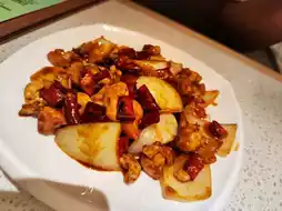Tender chicken pieces paired with crispy cashews. The chicken is juicy and tender, and the crunchiness of the cashews adds texture layers. The sweet, salty, and spicy Kung Pao sauce pairs especially well with rice.
