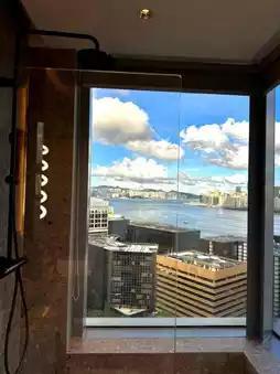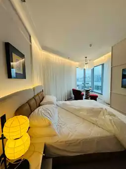 The 324 guest rooms are modern and sculptural, featuring triangular and corner windows that frame sweeping harbour or city views. Inside, pops of red and primary‑color accents bring energy, while lacquer‑style minibars and sewing‑box detailing quietly celebrate local craftsmanship .