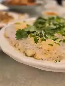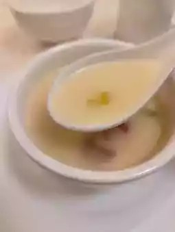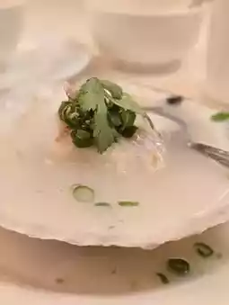 Slow-cooked scallops in rice soup is my first time trying. The porridge-like rice soup pairs well with the scallops, and a little Jinhua ham as garnish and flavor enhancer makes it very good. Of course, the scallops must be cooked precisely to achieve this level.