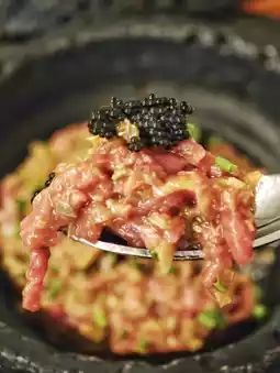 The beef tartare🥩 with black caviar is incredible! The beef is finely chopped🔪 and perfectly seasoned, not overpowering the fresh sweetness of the beef😋. The texture is tender and smooth, and the highlight✨ is the generous spoonful of black caviar🖤 on top. The salty freshness perfectly complements the rich beef tartare💥, creating an explosion of layers💡!