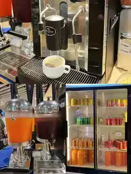 Beverages include various canned drinks, orange juice, black tea, tea bags, coffee, and more.