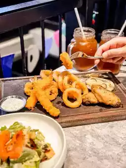 The all-you-can-eat starters are like a collection of exquisite French small dishes. The most stunning "Garlic Baked Mussels" are enhanced with white wine and garlic, with plump and juicy mussel meat; the "Caesar Salad with Smoked Salmon" pairs crisp Romaine lettuce with rich, oily fish slices, topped with Parmesan cheese flakes falling like snow. Among the fried items, the "Breaded Fried Shrimp" has a thin, delicate coating like cicada wings, with springy shrimp meat; the "Crispy Calamari Rings" and "Crunchy Onion Rings" are crispy and delicious, perfect for snacking and chatting. The "Honey Chicken Wings" are roasted to a translucent amber, with a honey glaze that makes your fingers itch to dig in.