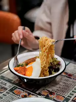 The food focuses on brunch with a bit of a fusion style, mostly single-plate dishes, but many look appetizing. The menu is divided by time slots: 07:00-11:30, 11:30-18:00, 14:30-18:00, 07:00-18:00, approximately. The dishes we ordered: