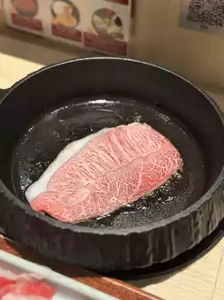 “Sukiyaki Kansai” focuses on Kansai-style sukiyaki, and they have opened a branch in Tsim Sha Tsui. As soon as you enter the store, you’ll see a giant Wagyu model, very impressive! The staff arranged a counter seat for me, with a pot for each person to cook their own sukiyaki. The menu offers several different cuts of Wagyu beef for grilling. This time, I ordered two types of meat to try!