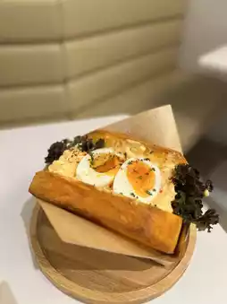 Every time I come to this restaurant, I order this. The soft-boiled egg sandwich looks super beautiful🥪 Besides the soft-boiled egg on top, the thick buttery toast is filled with egg salad, and the taste isn’t too salty. I highly recommend this egg sandwich🥗