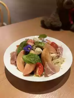 This is also a limited-time new item, with healthy salad greens🥗 at the bottom. Other ingredients include burrata cheese, Parma ham, and white peach flesh. The sweetness of the white peach really brings a summery vibe☀️