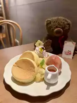 Every time I come to this place, I want to order their signature soufflé pancake😚 This time they launched a limited-time white peach flavor😻 There are three large soufflé pancakes, full of airy texture. Besides white peach chunks, there are also whole peeled and pitted white peaches🍑 Plus homemade white peach sauce and yogurt-flavored cream, it really has a unique flavor.