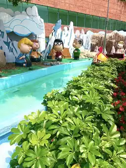 When you arrive, you can first line up to ride the canoe. Taking a round will let you see many hidden little corners, all Snoopy-themed, and you can only see them by boat.