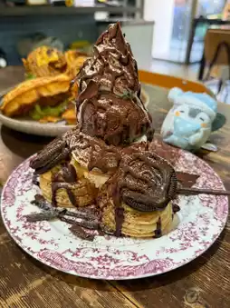 This time, we visited a charming cafe located in San Po Kong β€οΈ to try their highly recommended slow-cooked pulled pork belly waffle sandwich π. The restaurant is decorated in a nostalgic style, exuding a retro vibe that takes you back to the 70s and 80s π. Truly unique π.
