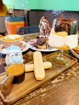 The tiramisu was served with espresso, ladyfingers, and custard cream separately, presented beautifully and eye-catching π€. Guests can customize the sweetness by dipping the coffee and cream to their liking π. Super chill π.