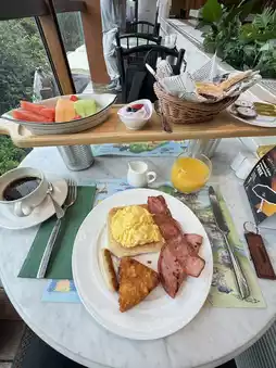 The breakfast options include Chinese, Western, and Light choices. I chose the Light breakfast, but the portion was definitely not small‼️ It even came on a special long tray, serving the entire breakfast set, arranged to look like a long sailboat⛵️! Watching the sea view of Tai O Island while eating breakfast perfectly capped off the whole heritage hotel stay experience😌
