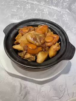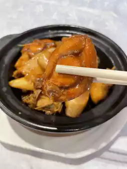 It sizzles when served, piping hot. The abalone has a slightly chewy texture, the fresh Chinese yam is crisp, the chicken tender, and the sauce tastes like corn chicken with a bit of satay sauce—definitely needs some white rice.
