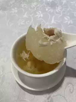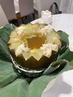 👍🏻 The ingredients are truly authentic, using a whole winter melon. It contains crispy and sweet fresh lily bulbs, lotus seeds that aren’t bitter, dried scallops, generous crab meat, fresh and sweet flavors, bouncy shrimp meat, chicken, lean pork, and best of all, added conch heads that make the broth even sweeter. The winter melon flesh is tender and smooth.