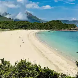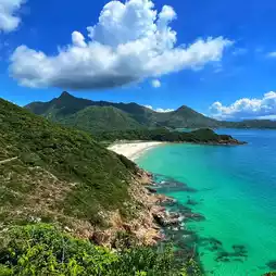 Ham Tin Wan is a secluded slice of heaven tucked within Sai Kung’s rugged coastline. After a scenic hike past Sai Wan Beach, I arrived at this pristine stretch of sand framed by lush hills and turquoise waters. The vibe was peaceful, with just a few campers and surfers dotting the shore. Crossing the quirky wooden plank bridge added a touch of adventure, and the local eateries served up refreshing treats like tofu pudding and red bean slushies. Whether you hike in or take a speedboat, Ham Tin Wan rewards you with raw beauty, serenity, and a true escape from city life.
