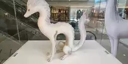 is exhibited at the Harbour City Art Museum in Tsim Sha Tsui, showcasing the art exhibition "Phantom Beast Re-dream" by Japanese artist Hitoshi Tsuchiya, open to the public for free. This internationally renowned master of "spirit-style wood carving" presents nine brand-new creations, iconic animal sculptures that blend traditional Japanese Buddhist statue carving with modern artistic concepts. One distinctive feature is the animal sculptures paired with crystal glass eyes, enhancing their vividness. While visitors generally consider the artworks as the artist's imaginative creations, a rare albino reindeer was recently discovered in Japan, whose appearance closely resembles Tsuchiya's artistic works.