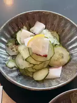 Sweet and sour pickled cucumber with octopus 🐙 à la carte $58 💰 Chewy octopus 😆 paired with sweet and sour cucumber 🥒 so fresh 💦