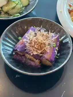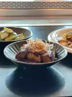Nanban-style pickled eggplant 🍆 à la carte $48 💰 Eggplant fried until crispy outside and tender inside 😗 with sweet and salty sauce, topped with bonito flakes 🐠 very appetizing 😛