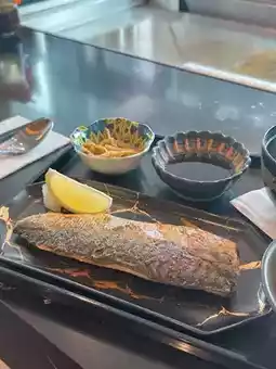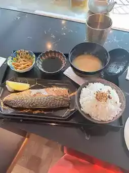 Salt-grilled mackerel set meal 🍱 à la carte $138 💰 Mackerel grilled until the skin is crispy 🐟 with firm, fresh meat 😋 dipped in grated radish vinegar and lemon juice for a refreshing taste 🥕🍋 served with pickles, miso soup 🥣 and white rice 🍚