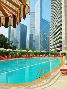 Spacious and beautifully styled, the rooms here are all about quiet luxury — plush beds, marble bathrooms, and giant windows that frame either the sparkling Victoria Harbour or the lush Peak hills.