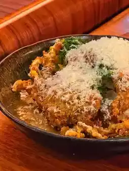 Before serving, the staff asks whether you'd like cheese or chocolate. We opted for cheese, and they grated a generous amount of cheese over the rice and soft-shell crab. The crab is fried to a golden crisp, and the curry is rich and flavorful, perfect with rice.