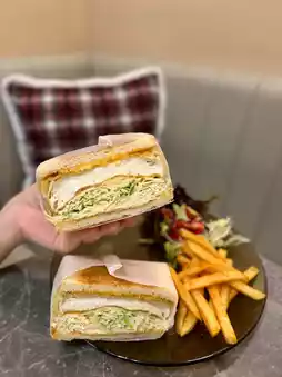Seeing it was the restaurant’s signature, I ordered one to try😮 This sandwich completely surprised me! The outside uses thick toast, and inside there’s a piece of fried silky tofu, shredded cabbage, and the most special ingredient is the sriracha chili sauce👍🏻 The sauce is the perfect finishing touch, making the otherwise mild ingredients stand out🥪 Highly recommend everyone to order this filling sandwich.