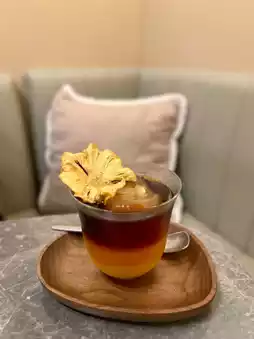 The barista uses nutty coffee beans to make a cold brew with a unique flavor, featuring a fragrant dark chocolate taste☕️ The bottom layer includes mango puree, pink guava juice, coconut ice, and dried pineapple slices. This combination offers a rich texture and a strong fruity sweetness🍍 I especially like the coconut ice in the cup, which slowly melts to create different layers, enhancing the drink’s flavor.