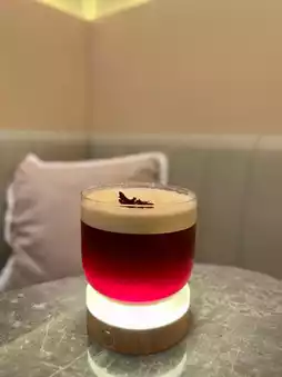 The presentation of this drink is very special; it glows, allowing you to better see the layers⭐️ The blackccino foam on top is made from fruity coffee beans, combined with homemade lemongrass and butterfly pea flower syrup. The base of the drink uses roselle and rose tea🌹 The whole drink has a floral aroma and tastes quite refreshing.