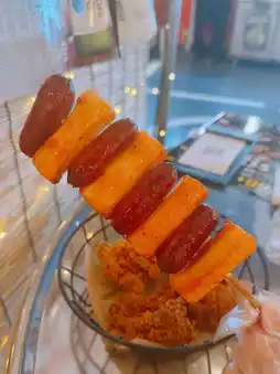 Unlimited rice cake and sausage skewers🍖 set includes💰 rice cakes are crispy outside and chewy inside😆 pairs well with sausage😛