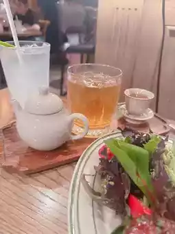 Iced oolong tea is served with a hot teapot, a very special way to enjoy iced oolong tea. At first, it has a smoky aroma, then a subtle oolong tea flavor 🍵, very fragrant and mellow. Plus, there’s a small cup of hot oolong tea that’s just as good 😊.