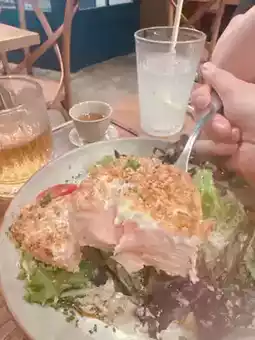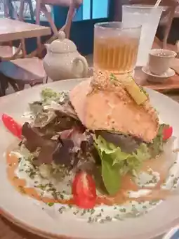 The grilled salmon skin is crispy, and the salmon fillet is thick, tender, and juicy—every bite is full of meat. It goes perfectly with salad greens and Middle Eastern rice salad. I especially love 💕 the house-made sauce that adds layers of flavor.