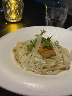 The main dishes #Australian M4 Beef Tenderloin and #Sea Urchin Black Truffle Cream Fettuccine are outstanding and memorable! The M4 beef tenderloin has a beautifully grilled charred pattern on the outside, and when cut open, the beef is pink and tender, very smooth with a rich beef aroma! The sea urchin black truffle cream fettuccine comes with two finger-sized sea urchins 😍 and a rich black truffle sauce. Gently mix it, and the fettuccine is coated with sea urchin and black truffle sauce, a great combination!