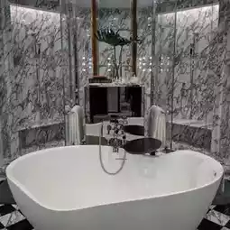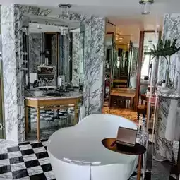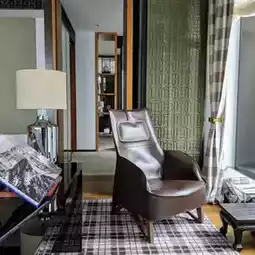 The interior design details are simply divine! Olive green as the main tone paired with moose head-shaped door handles and checkered elements exude understated luxury with a royal vibe. The marble bathroom is super spacious, featuring double sinks and double showers. Next to the standalone bathtub, bath oils and bath salts are provided, so you can soak while enjoying the night view of Victoria Harbour—totally chill to the max!