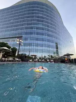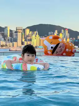 Traveling with kids in Hong Kong, our favorite is this Kerry Hotel where you can swim facing the sea—truly the top choice for family trips, and we keep coming back for more!
