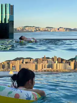 The view from Kerry’s pool is absolutely stunning, and the best part is it’s completely shaded, making it super friendly for water-loving moms and kids alike. The pool is 1.2 meters deep and not very large, so you can always keep an eye on your little ones, which is very reassuring. Facing Hong Kong Island, while the kids happily swim, I can quietly enjoy the sunset over Victoria Harbour with a drink in hand—truly a little joy during a trip with kids.